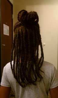It didnot take long either, only two hours. I braided the twists first for about a inch then started twisting the rest of the way down.